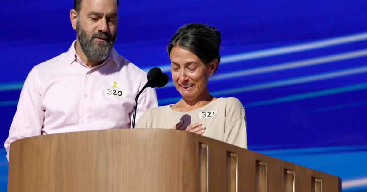 The arena was hushed Wednesday night as Goldberg and her husband, Jon Polin, spoke of their son, Hersh, a 23-year-old Israeli American and one of the U.S. citizens held in captivity in Gaza. His left arm was blown off by a grenade Oct. 7 when Hamas attacked the Nova music festival.