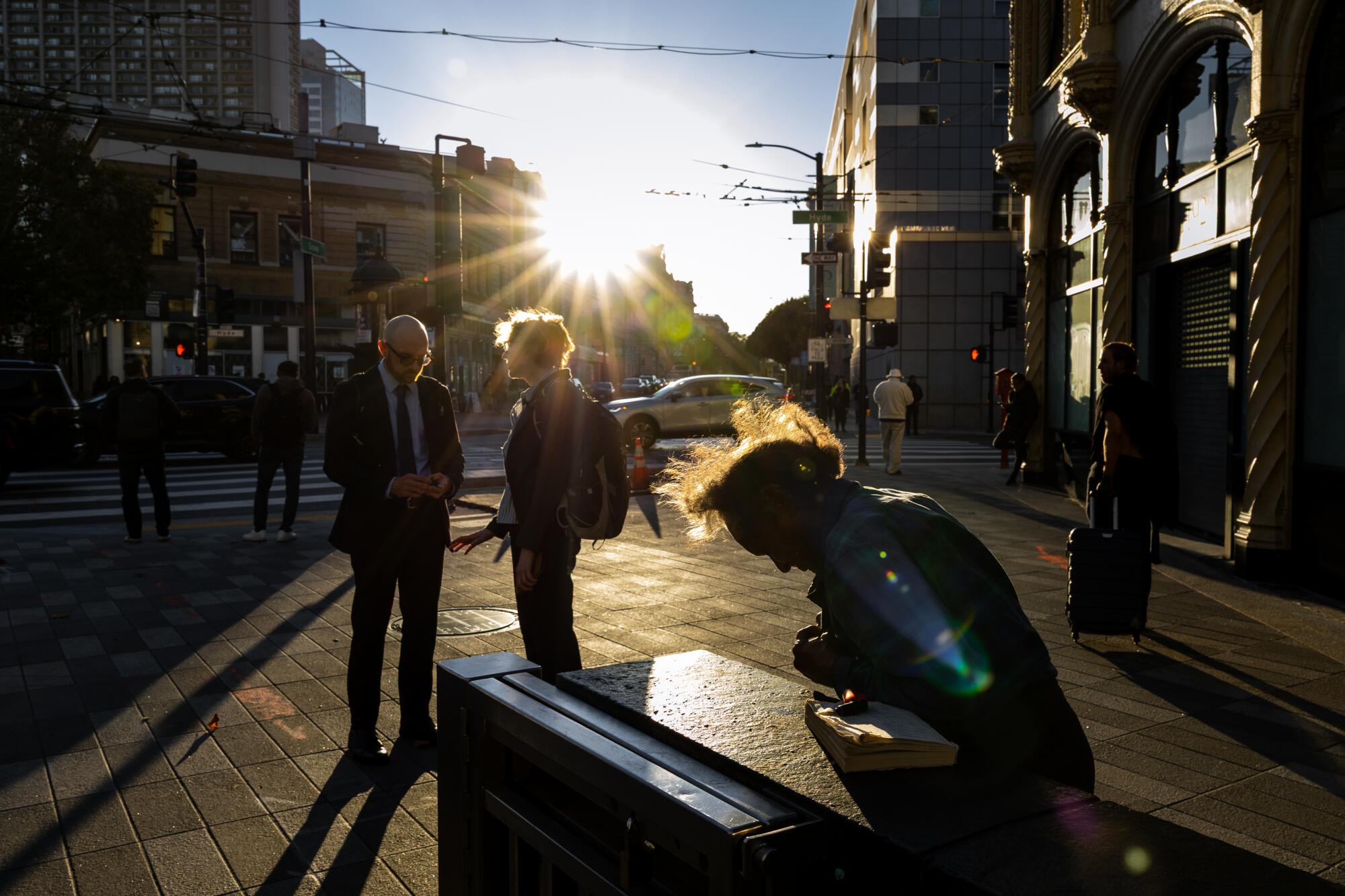Claire Roeland, 30, from Austin, Texas, said she has visited San Francisco a handful of times in recent years and had “mixed” experiences. She has family who live in surrounding neighborhoods and find it completely safe, she said, but when she’s in town it’s “predominantly in the business district” — where it’s hard not to be disheartened by the obvious suffering of people with addiction and mental illness and the grime that has accumulated in the emptied-out core.