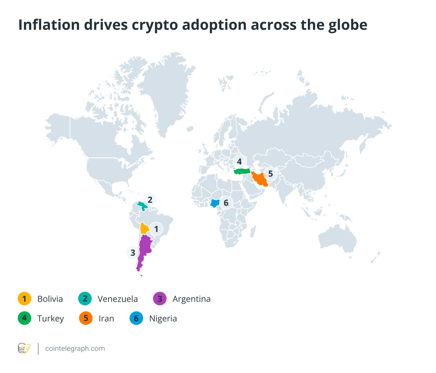 Still, some countries are suffering from extremely high inflation, even soaring into the triple digits. In these places, crypto has become one tool for people to save their finances.