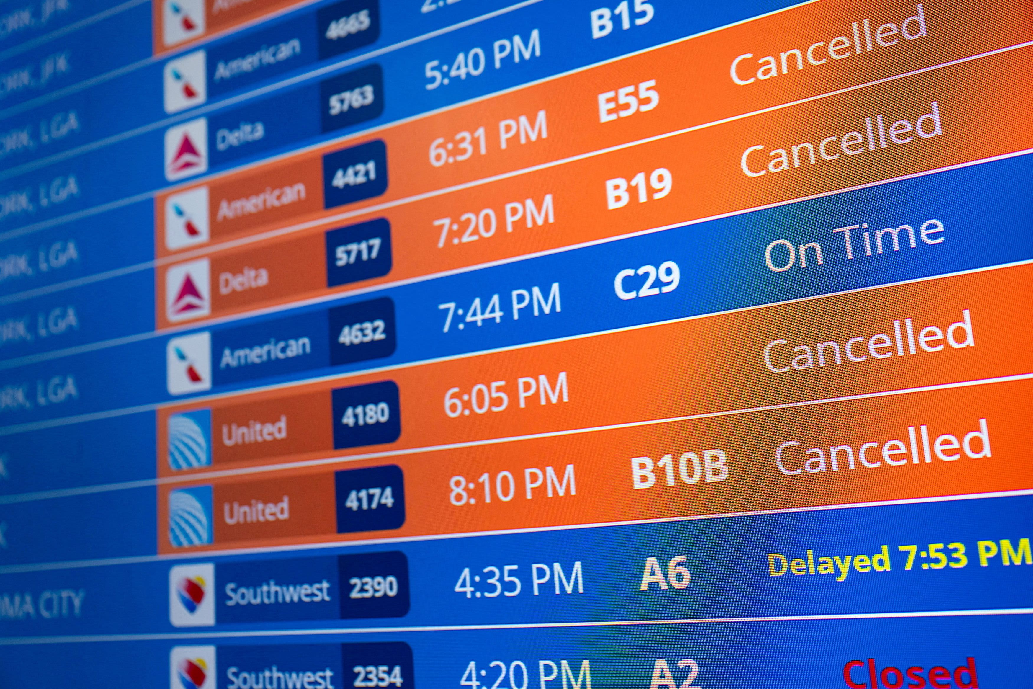 On Monday, 1,623 of the 25,735 scheduled U.S. flights were canceled, around 6.3% of the day’s schedule, though on-time departures were better than average, a good sign after days of travel snarls, according to aviation data firm Cirium.